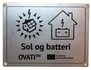 Ovati Solcelle og batteri skilt